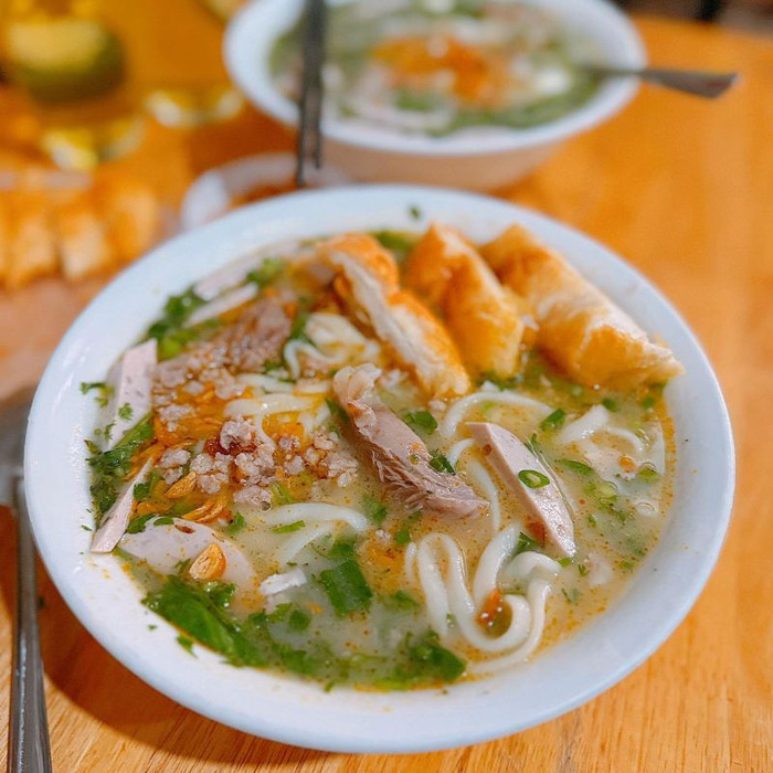 Cháo canh (hay bánh canh xứ Nghệ) là món ăn quen thuộc của người dân địa phương. Sợi bánh to, mềm, nước dùng đậm đà nấu từ xương, ăn kèm thịt, tôm, trứng cút. Khi nhiệt độ xuống thấp, một bát cháo canh nóng trở thành lựa chọn lý tưởng cho bữa sáng hoặc bữa xế.