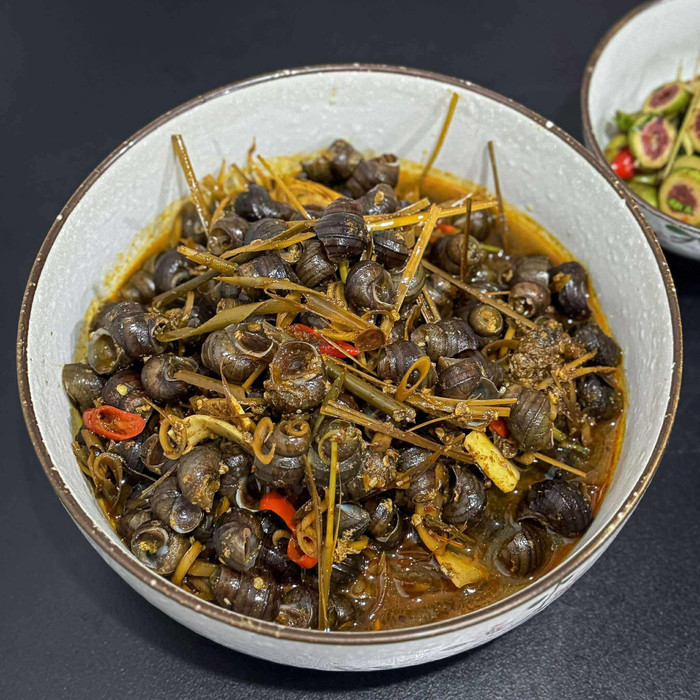 Ốc xào theo phong cách Nghệ An thường có nhiều sả, gừng và ớt, vị cay nồng rõ rệt. Trời lạnh, ngồi thưởng thức đĩa ốc xào nóng hổi, húp nước ốc cay thơm là trải nghiệm ẩm thực khó quên với nhiều người.