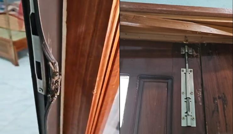 Cửa nhà anh Minh bị kẻ trộm cạy phá.