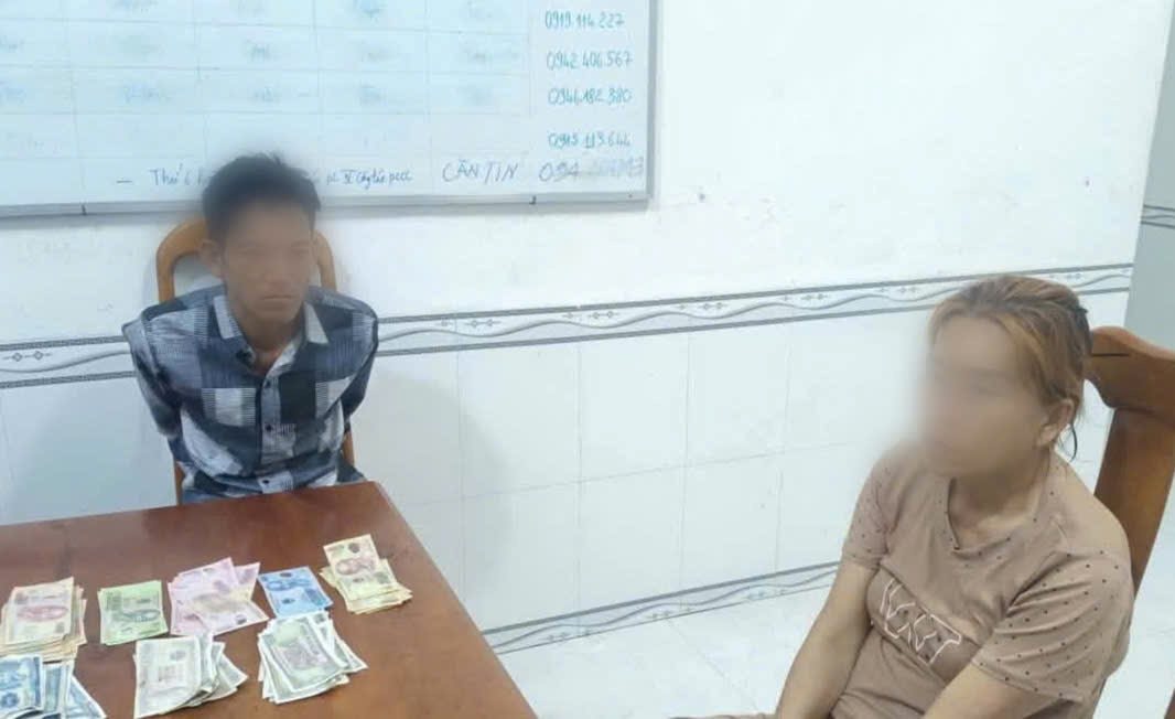 Lâm Hoàng Em và vợ là Phạm Thị Thanh tại cơ quan công an (Ảnh: CACC).