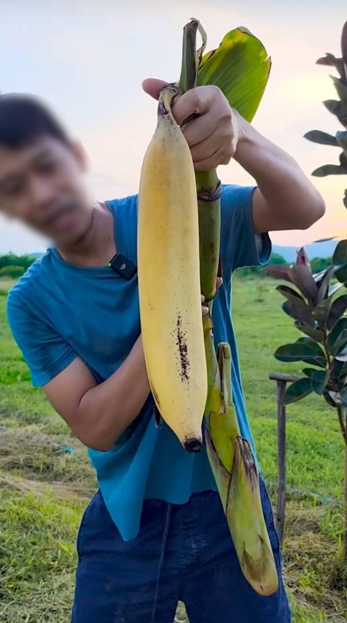Mới đây, một chàng trai tại Thái Lan chia sẻ trái chuối khổng lồ, có chiều dài gần bằng một cánh tay người lớn khiến cộng đồng mạng kinh ngạc. Ảnh: @Tagplethtiktok