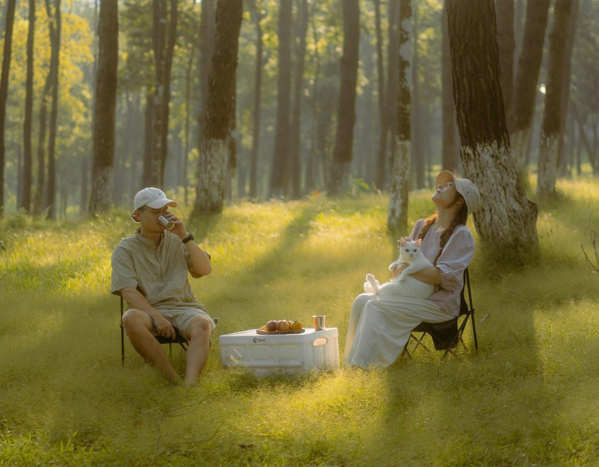Buổi chiều, du khách có thể đạp xe quanh những cung đường uốn lượn, hít hà hương rừng, hoặc săn mây trên đỉnh Vua – nơi phóng tầm mắt ra xa, nhìn toàn cảnh hồ Suối Hai ẩn hiện trong sương.
