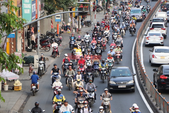 Ghi nhận thực tế chiều 16-12, tại đường Quang Trung, phường Thông Tây Hội, TPHCM (đoạn Bệnh viện Đa khoa Gò Vấp), chỉ khoảng 10 phút có hơn chục tài xế xe máy chạy ngược chiều, leo vỉa hè, không đội mũ bảo hiểm, chở ba...