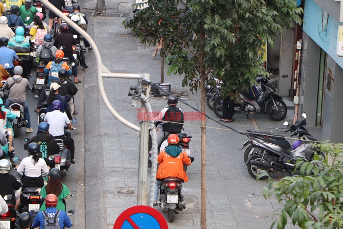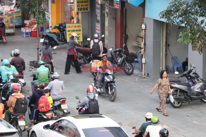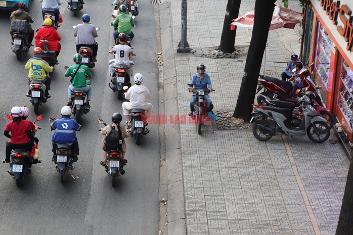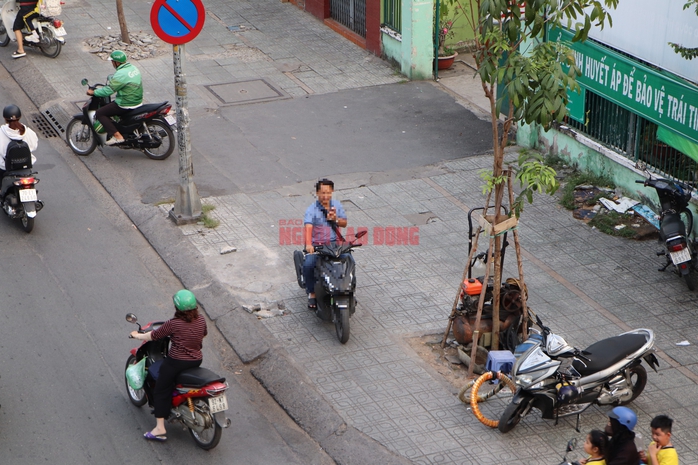 Thậm chí có người đàn ông vừa chạy ngược chiều trên vỉa hè, vừa không đội mũ bảo hiểm và liên tục nghe điện thoại.