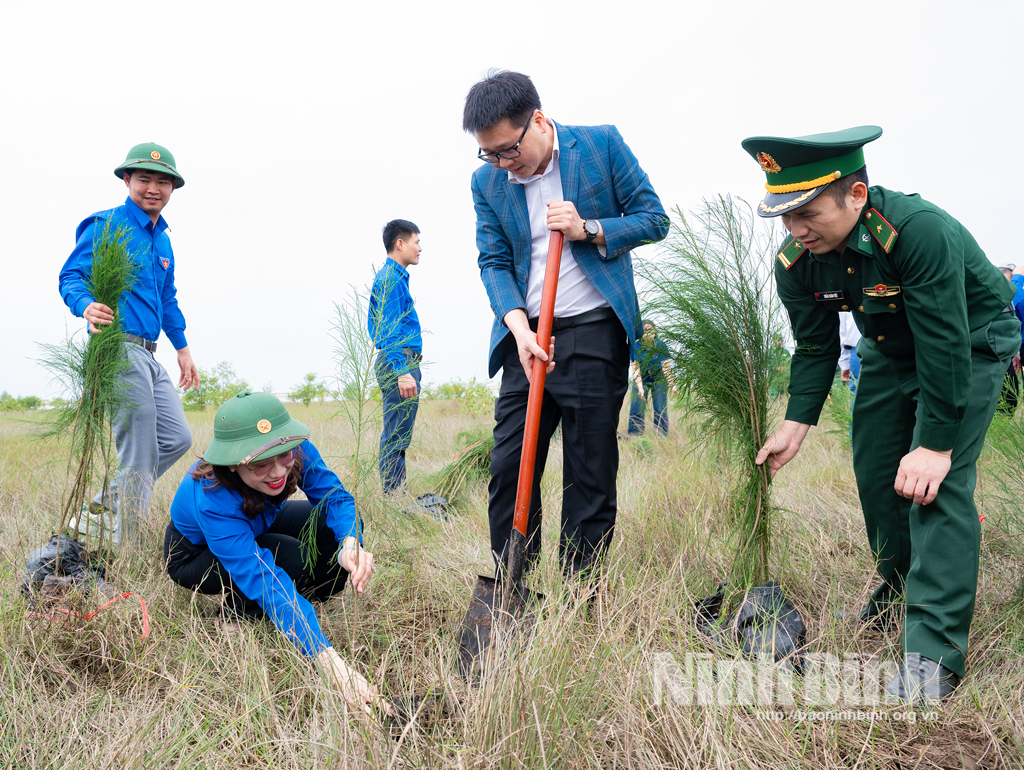 Tiếp đó, chương trình “Tết trồng cây Xuân Bính Ngọ 2026” đã được phát động với thông điệp phát huy vai trò của tuổi trẻ trong bảo vệ môi trường, ứng phó với biến đổi khí hậu và chung tay xây dựng nông thôn mới bền vững. Các đại biểu và đoàn viên thanh niên đã tham gia trồng 2.000 cây phi lao tại khu vực Cồn Nổi, góp phần tạo “lá chắn xanh” bảo vệ hệ sinh thái và sự phát triển bền vững của địa phương.