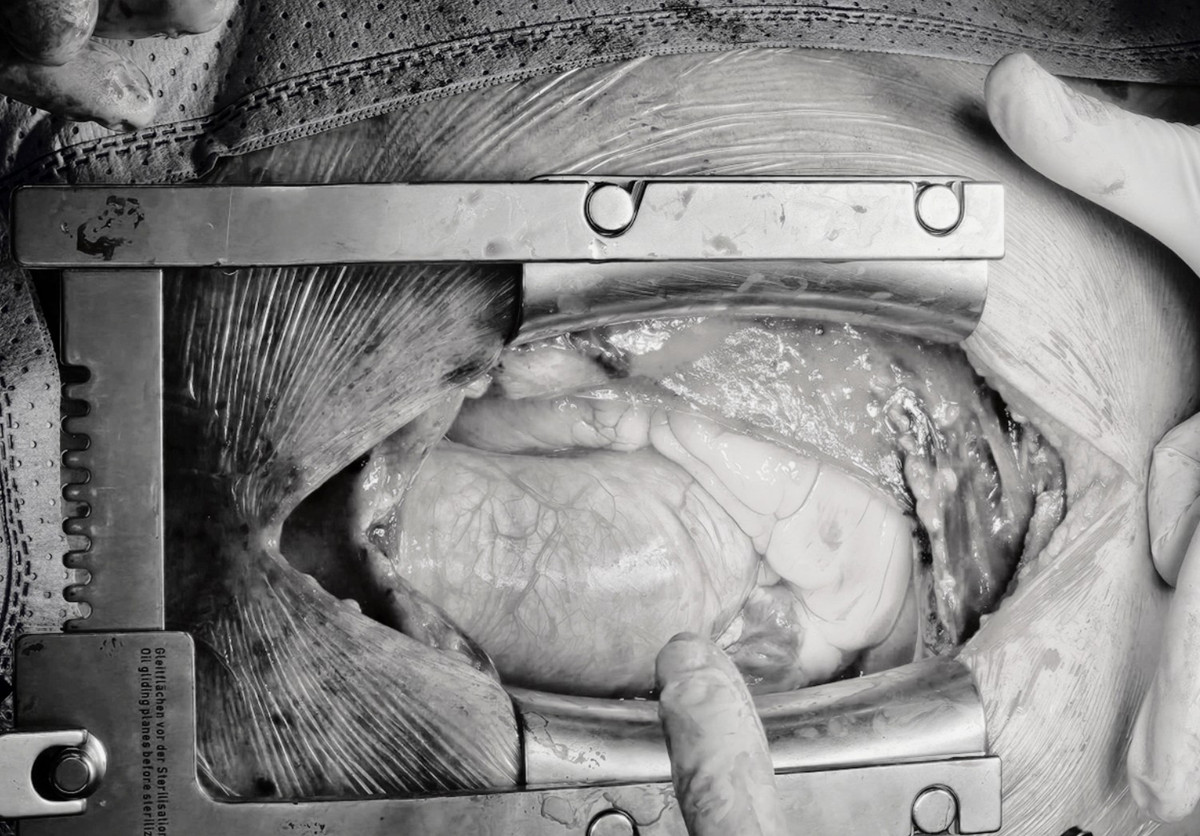 Kết quả kiểm tra cho thấy người bệnh bị rách động mạch chủ đoạn lên, khiến mạch máu bị tách thành hai lòng, trong đó lòng thật chỉ còn khoảng 40–50%. Đồng thời, bác sĩ ghi nhận tràn máu nhiều quanh tim: Vùng gần thất phải dày 18–19 mm, vùng gần thất trái dày 8–9 mm, gây chèn ép tim nghiêm trọng, nguy cơ tử vong trong thời gian rất ngắn nếu không được phẫu thuật khẩn cấp.