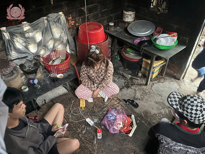 Các đối tượng tại hiện trường (nhà của Huỳnh Thanh Hưng). Ảnh: Công an tỉnh Gia Lai