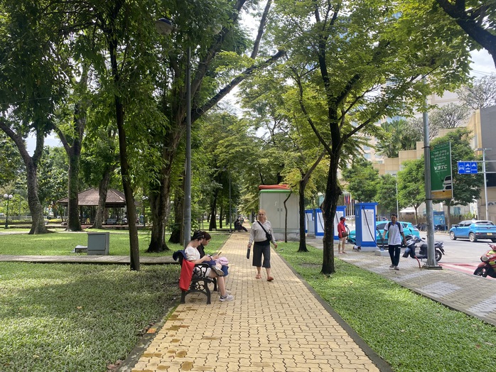Người dân tản bộ tại công viên 23 tháng 9, phường Bến Thành.