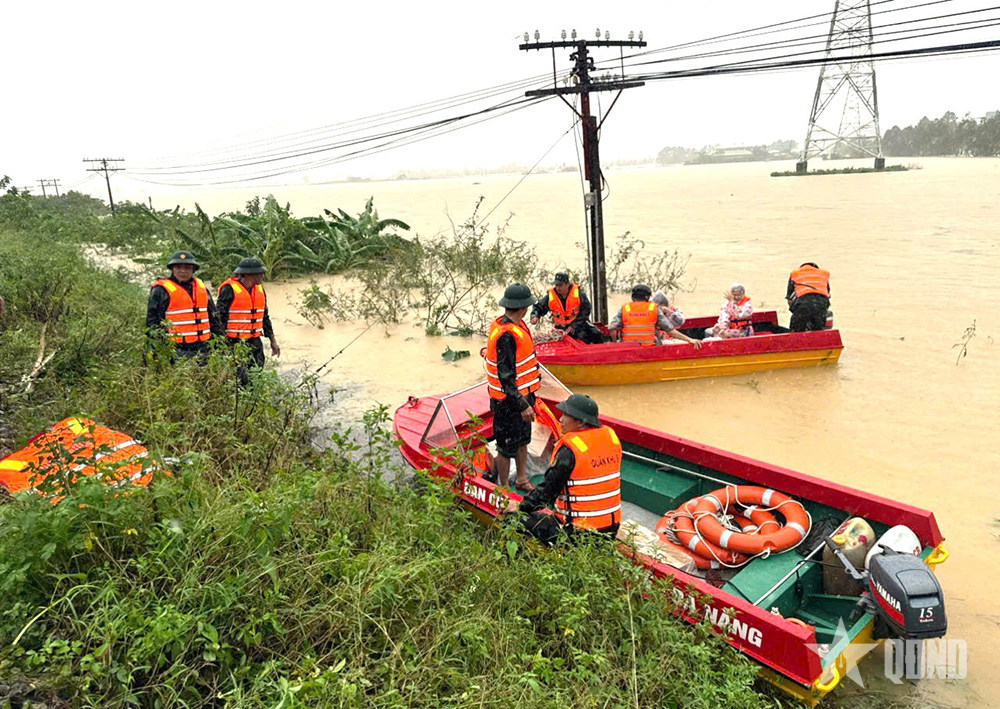 Sau những trận mưa lớn kéo dài, xã Hòa Tiến (Đà Nẵng) có đến 19/22 thôn, xóm bị ngập sâu, gây chia cắt cục bộ nhiều nơi. Được cấp ủy, chính quyền, lực lượng chức năng tuyên truyền, vận động, người dân nơi đây đã chủ động tìm nơi tránh trú từ vài ngày trước. Nhiều xe máy, ti vi, tủ lạnh, các thiết bị điện tử... của bà con cũng được bộ đội, dân quân bao gói, đưa lên tầng hai, tầng ba để bà con yên tâm khóa cửa đi sơ tán. Với những hộ dân có nhà tạm, nhà cấp bốn, Ban CHQS xã đã huy động dân quân hỗ trợ di dời, vận chuyển đồ đạc đến các điểm trường, nhà văn hóa trong thôn.