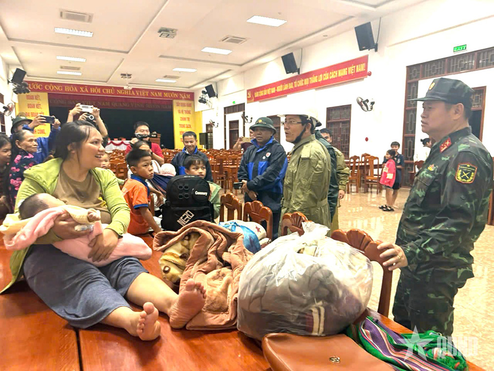 Ngày 28-10, tại 26 điểm sạt lở, ngập úng cục bộ trên các tuyến đường quốc lộ, tỉnh lộ, liên thôn, liên xã đi qua địa bàn các xã: Thanh Bồng, Cà Đam, Đắk Plô, Tây Trà Bồng, Ba Vinh, Phước Giang, Sơn Tây Thượng... (Quảng Ngãi), gần 500 cán bộ, chiến sĩ bộ đội, dân quân cùng các lực lượng chức năng vẫn đội mưa vác đá, vá đường, khơi thông dòng chảy, giúp các phương tiện lưu thông thuận tiện, an toàn. Tại cầu máng Hành Minh-Hành Nhân, cầu tràn Thạch Nham và các điểm ngập sâu dọc sông Trà Khúc, sông Vệ, các chiến sĩ cũng thường xuyên túc trực, cảnh báo, điều tiết, hướng dẫn giao thông. Bộ đội, dân quân cùng các lực lượng chức năng đã kịp thời hỗ trợ sơ tán 181 hộ/498 nhân khẩu đến nơi tránh trú an toàn, đề phòng lũ ống, lũ quét, sạt lở đất có thể xảy ra bất cứ lúc nào, nhất là khi đêm tối.