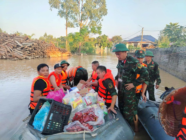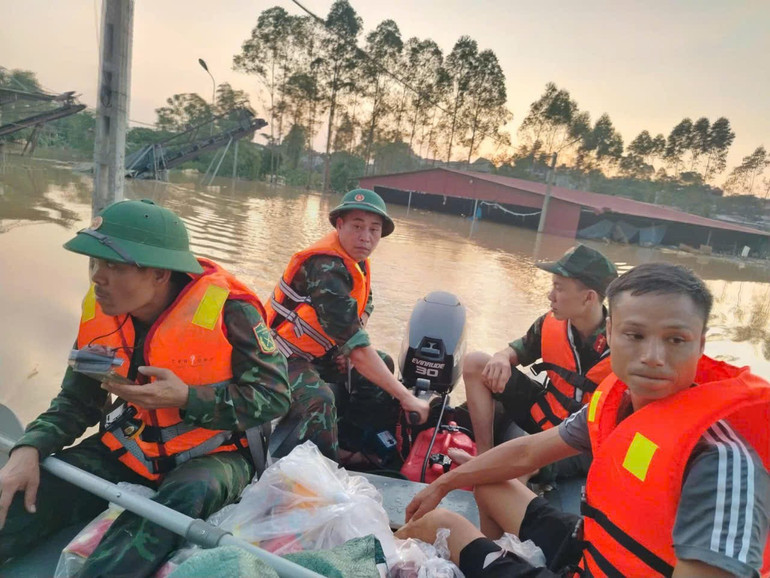 Trước tình hình đó, ngay sau khi được tăng cường làm nhiệm vụ cứu hộ và tiếp tế lương thực, thực phẩm cho nhân dân vùng lũ ở xã Bố Hạ, tỉnh Bắc Ninh, gần 100 cán bộ, chiến sĩ Lữ đoàn Đặc công Biệt động 1 đã có mặt kịp thời phối hợp cùng lực lượng chức năng địa phương, triển khai 4 xuồng cứu trợ, vận chuyển hàng chục chuyến hàng hóa, nhu yếu phẩm đến tận tay bà con đang bị cô lập trong vùng nước lũ thuộc các thôn Đồng Lều và Cầu Gụ (xã Bố Hạ).