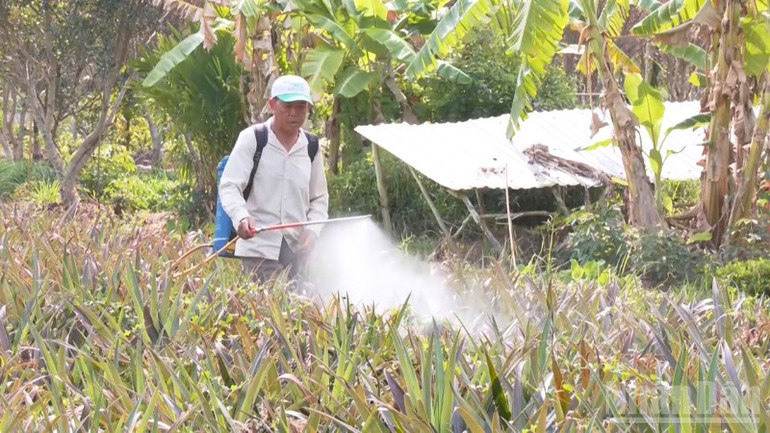 Người nông dân sử dụng chế phẩm vi sinh và phân hữu cơ trồng khóm mang lại hiệu quả kinh tế cao.