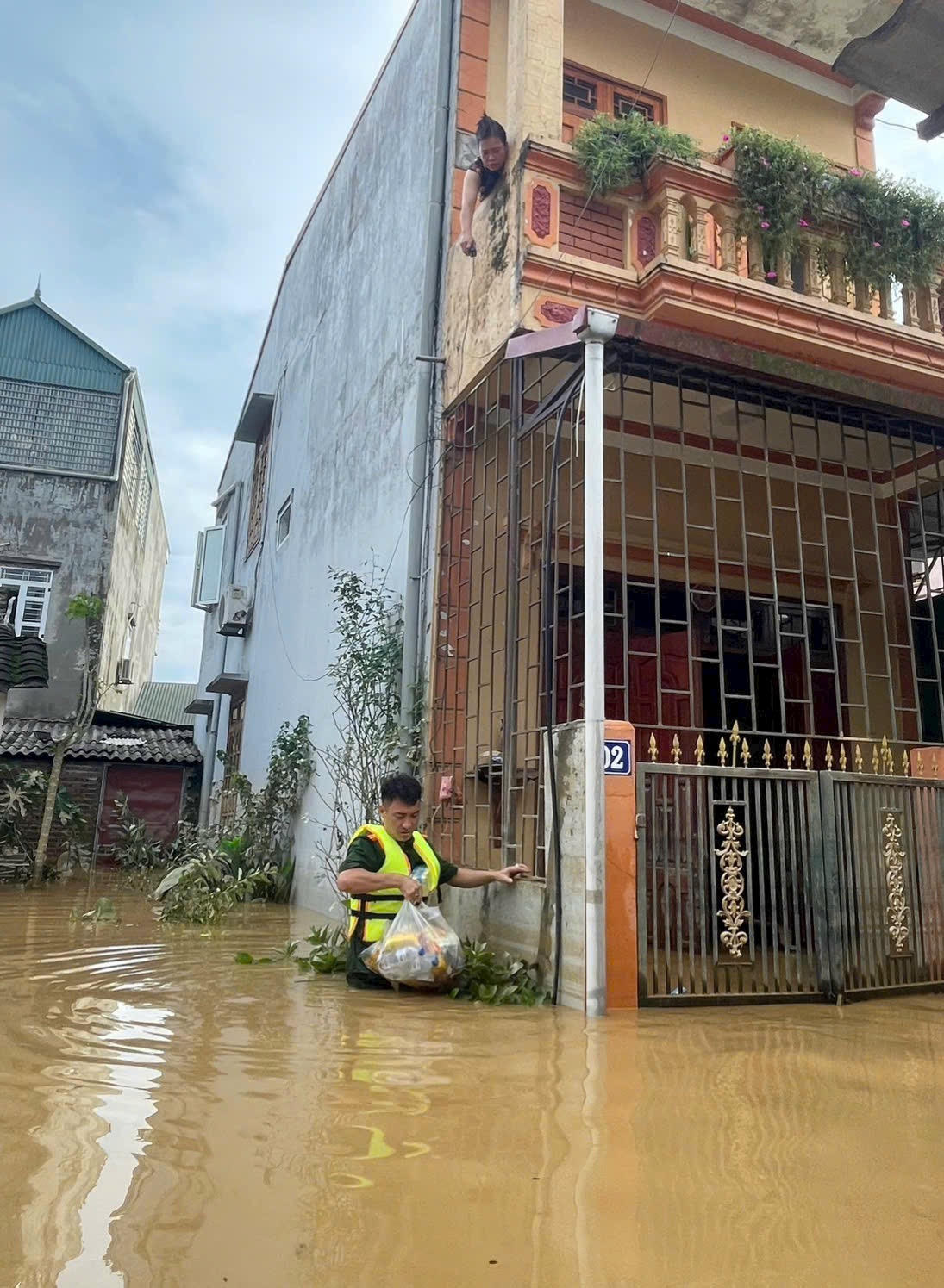 "Sáng 8/10, trong quá trình ứng trực tại khu vực ngập úng trên địa bàn, tôi nhận được cuộc gọi từ chủ tịch phường, điều động tới hỗ trợ người dân tại tổ dân phố Hợp Giang 1, trong đó có trường hợp bà Nguyễn Thị Bằng (79 tuổi). Khi tôi và đồng đội tiếp cận được vị trí gia đình, tôi đã lên tầng 3 để cõng cụ xuống. Lúc đó sức khỏe cụ rất yếu, khó thở. Nhưng chúng tôi và người nhà cụ vẫn vẫn bình tĩnh để đưa cụ ra khỏi điểm ngập thật nhanh. Ngay khi tới điểm an toàn, cụ đã được lực lượng y tế túc trực sơ cứu và đưa cụ tới bệnh viện gần nhất", thiếu tá Cao kể lại.