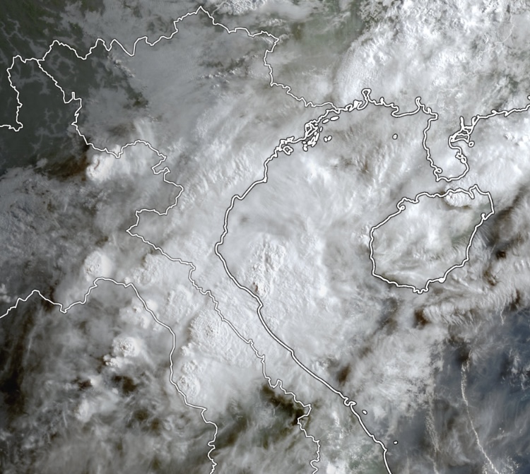 Vùng mưa đang dịch chuyển xuống Trung bộ. Ảnh vệ tinh chụp lúc 6 giờ 40 phút ngày 24-4, nguồn: Z.E