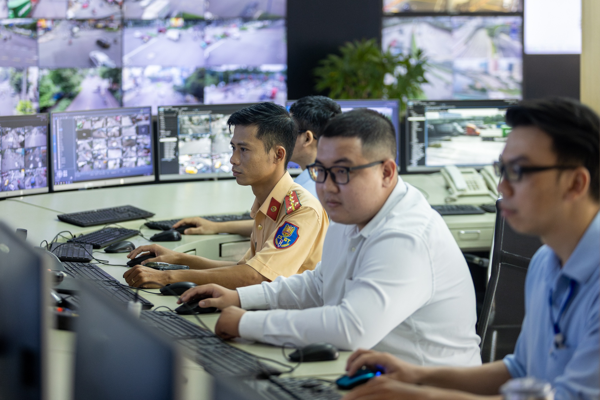 Hình ảnh từ các camera AI được truyền về trung tâm với độ nét cao, cho phép phát hiện đồng thời nhiều lỗi vi phạm như vượt đèn đỏ, đi ngược chiều, leo vỉa hè, dùng điện thoại khi lái xe.
