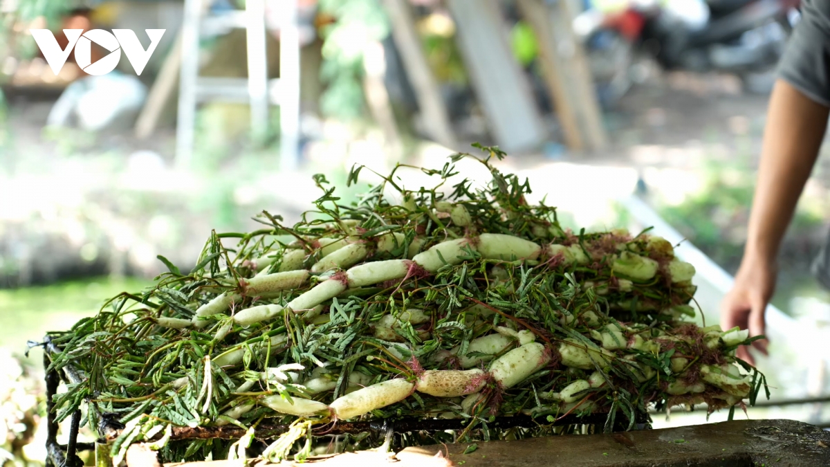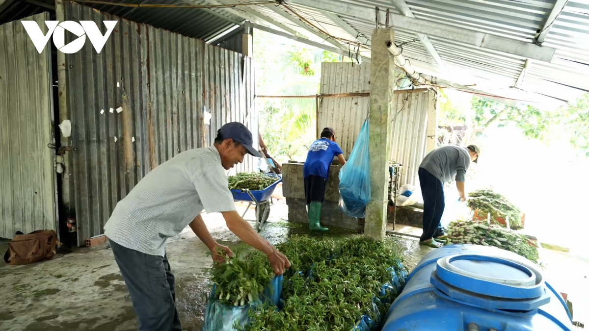 Rau nhút sau sơ chế chuẩn bị bán cho lái buôn