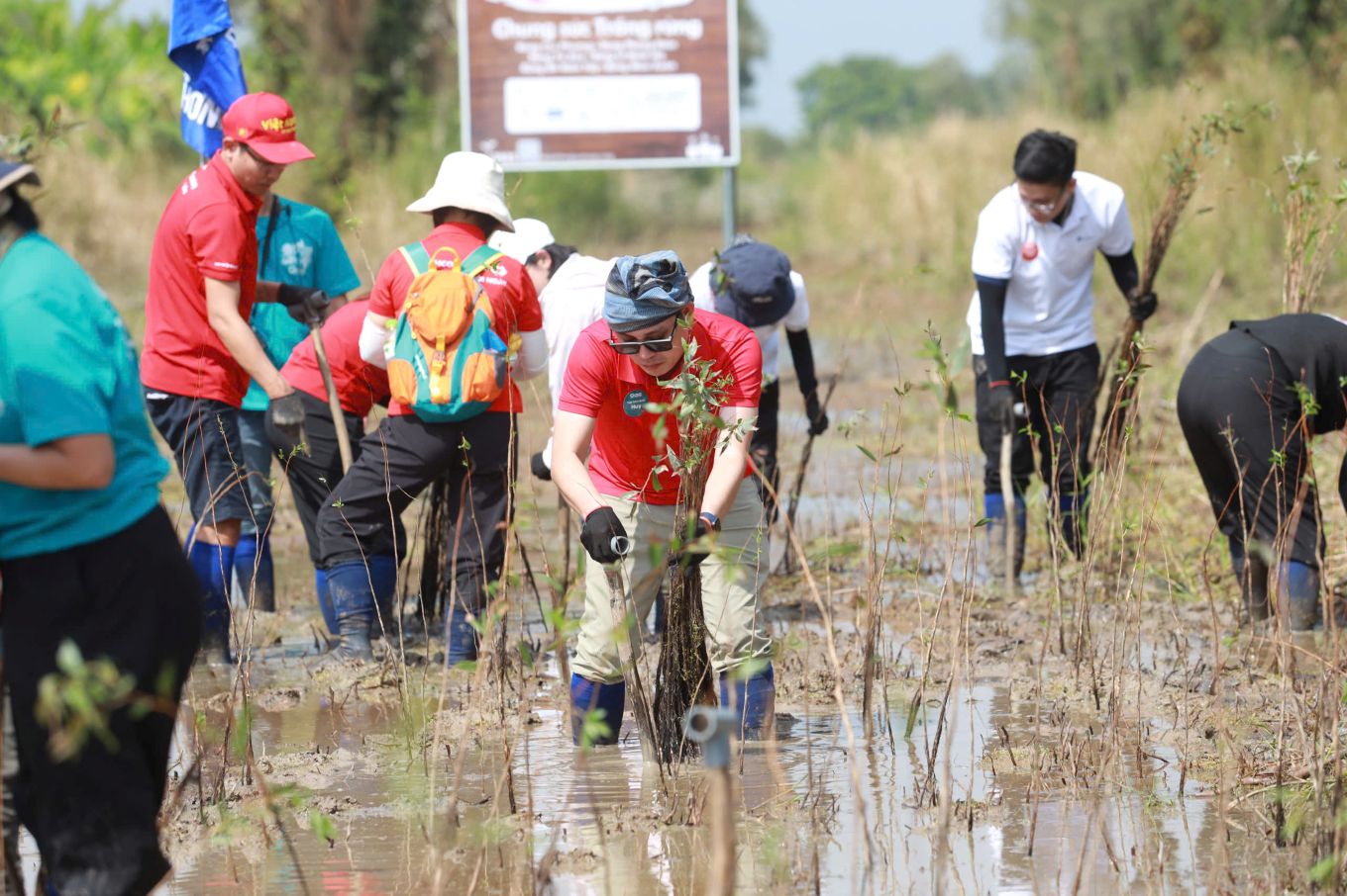 Khoảng 30 tình nguyện viên tham gia buổi trồng cây xanh tại Vườn quốc gia U Minh Hạ vào ngày 10-1.