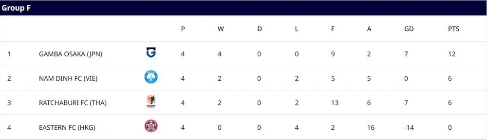 Như vậy sau hai trận thua Gamba Osaka, TX. Nam Định vẫn đứng ngôi nhì bảng, trong khi đó Ratchaburi của Thái Lan có hai trận thắng liên tiếp trước Eastern FC của Hong Kong. Họ đuổi kịp TX. Nam Định về mặt điểm số nhưng hiệu số bàn thắng/bại Ratchaburi vượt trội. Tuy nhiên Ratchaburi xếp sau TX. Nam Định do thua đối đầu trực tiếp (Ratchaburi thua Nam Định 1-3).
