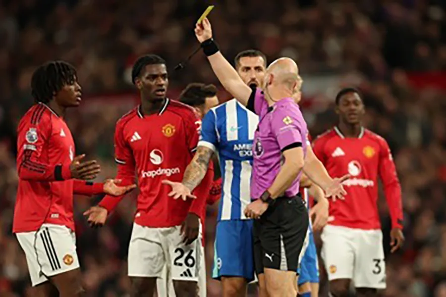 Đội bóng của Ruben Amorim đang dẫn trước 3-0 một cách thoải mái trước khi Brighton có cơ hội gỡ hòa. Phút 72, Patrick Dorgu bị thổi phạt vì pha tranh chấp với Yankuba Minteh, người đã có pha chạm bóng không tốt trước khung thành đối phương.