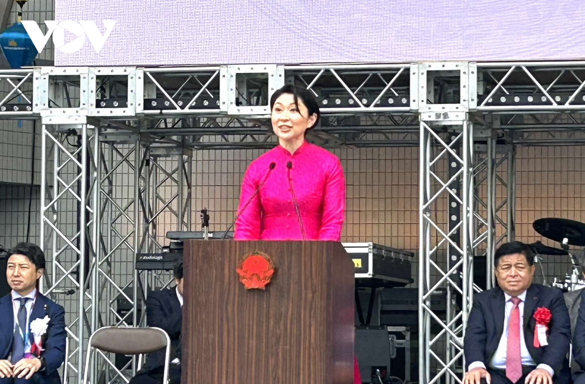 Nghị sĩ Obuchi trong tà áo dài Việt Nam đến dự Lễ hội Việt Nam. Ảnh: VOV-Tokyo