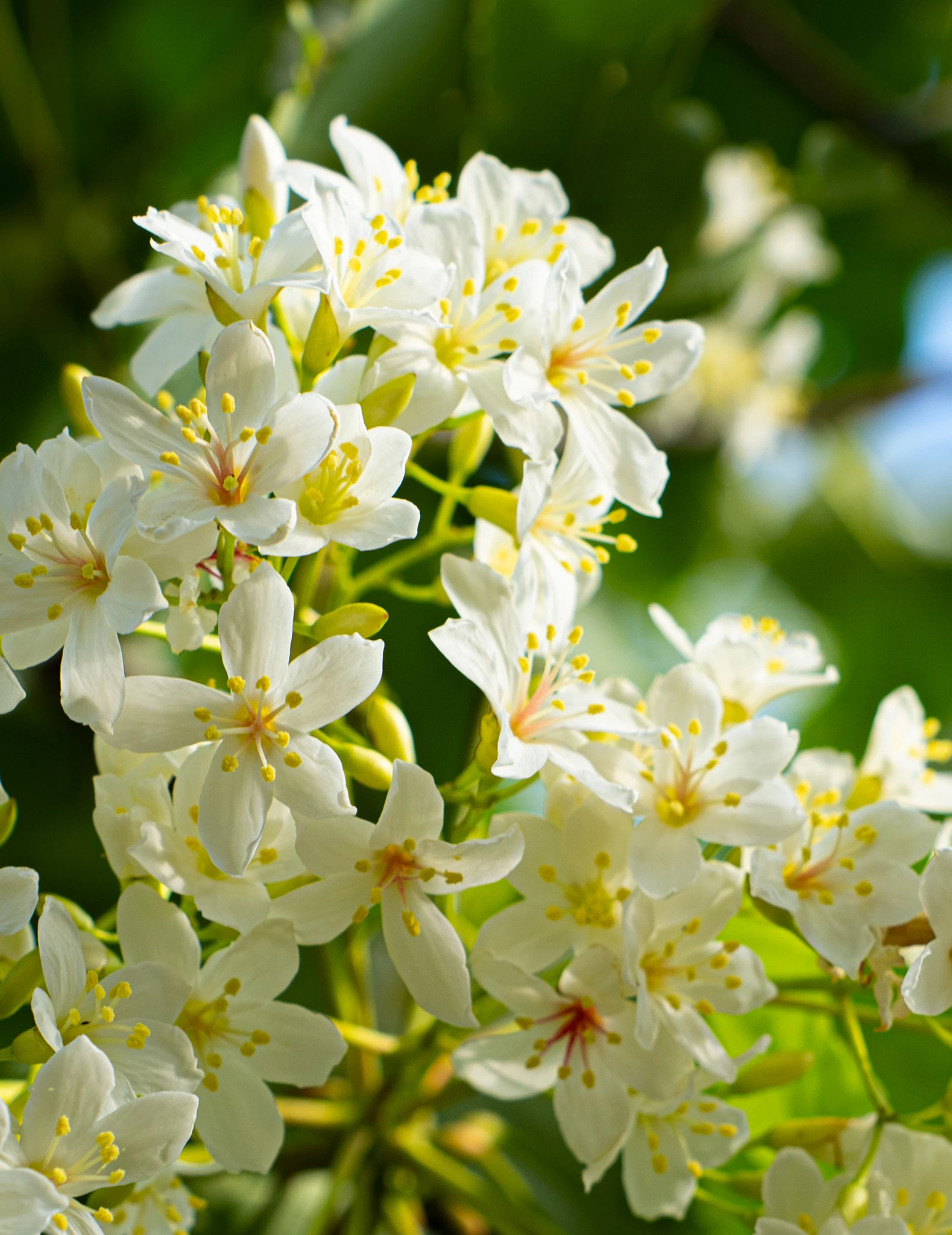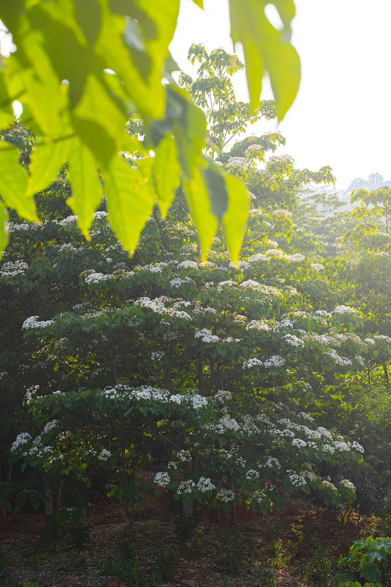 Hoa trẩu thường nở rộ vào cuối xuân đầu hạ, khi cái nắng dần chói chang báo hiệu cho một mùa mới. Trong làn nắng nhẹ, hoa rơi nhẹ nhàng theo từng làn gió, như muốn gửi những lời thì thầm của núi rừng vào lòng người - Ảnh: N.T