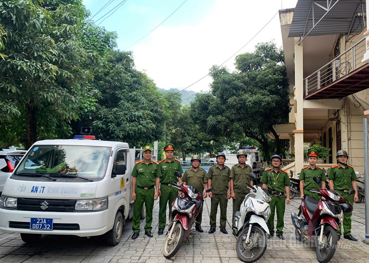 Lực lượng tham gia bảo vệ ANTT cơ sở tham gia đợt cao điểm tấn công, trấn áp tội phạm, tệ nạn xã hội, bảo đảm ANTT trên địa bàn xã Hoàng Su Phì.