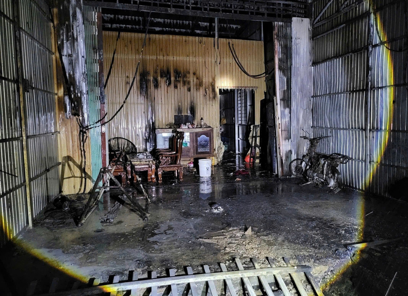 Hiện trường vụ cháy trụ điện lan sang nhà dân tại phường Hồng Ngự, tỉnh Đồng Tháp.
