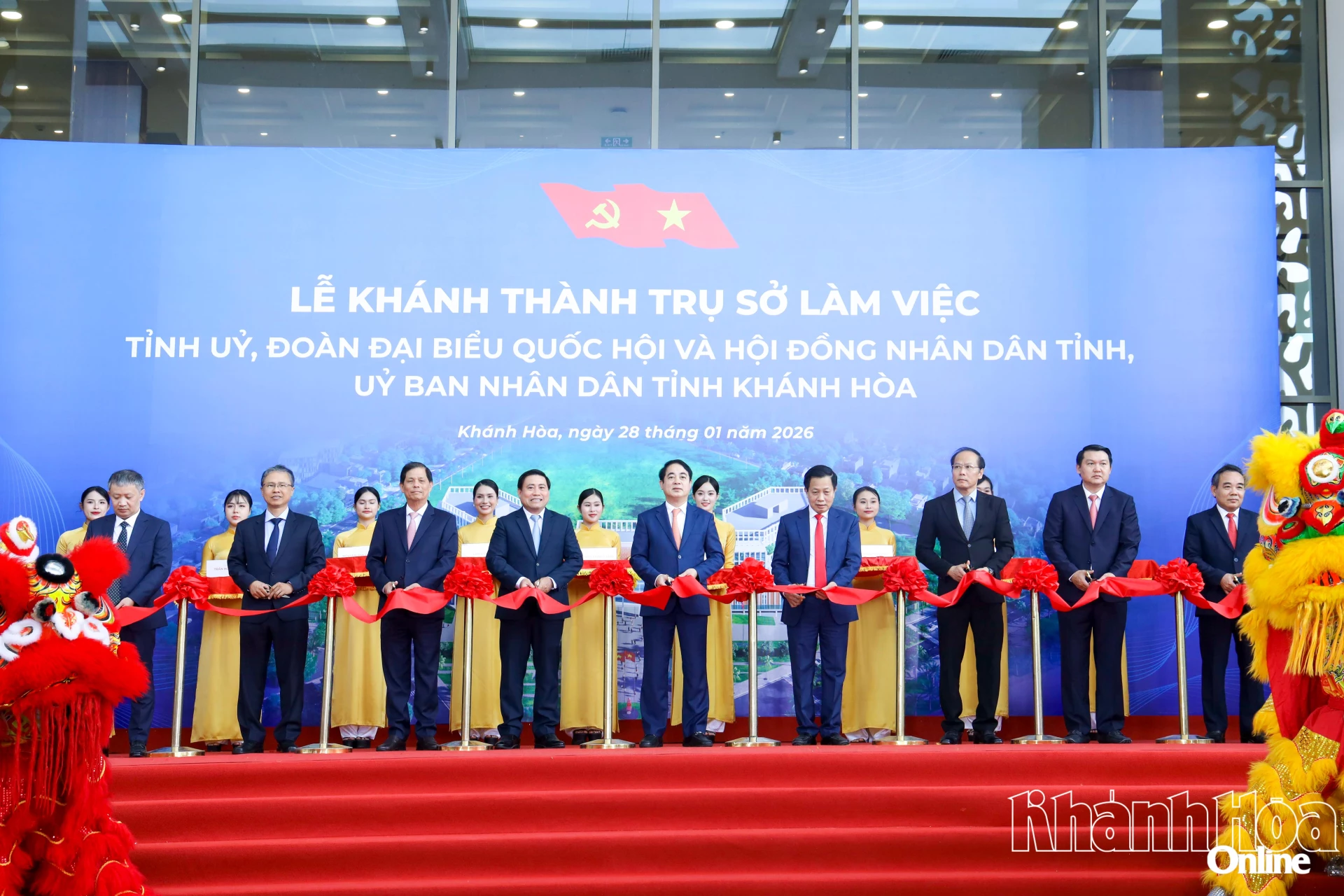 Sáng 28-1, UBND tỉnh tổ chức lễ khánh thành Trụ sở làm việc Tỉnh ủy, Đoàn Đại biểu Quốc hội và HĐND tỉnh, UBND tỉnh tại số 1 đường Trần Phú, phường Nha Trang. Dự lễ khánh thành có các đồng chí: Hà Quốc Trị - Ủy viên Trung ương Đảng, Phó Chủ nhiệm Ủy ban Kiểm tra Trung ương; Nghiêm Xuân Thành - Ủy viên Trung ương Đảng, Bí thư Tỉnh ủy; Lâm Đông - Phó Bí thư Tỉnh ủy, Chủ tịch HĐND tỉnh; Nguyễn Khắc Hà - Phó Bí thư Tỉnh ủy, Chủ tịch Ủy ban MTTQ Việt Nam tỉnh; các đồng chí Ủy viên Ban Thường vụ Tỉnh ủy, lãnh đạo HĐND tỉnh, UBND tỉnh, Ủy ban MTTQ Việt Nam tỉnh, Đoàn Đại biểu Quốc hội tỉnh. Dự lễ còn có các đồng chí nguyên lãnh đạo tỉnh: Nguyễn Thị Hồng Vân - nguyên Ủy viên Trung ương Đảng, nguyên Bí thư Tỉnh ủy; Trương Xuân Thìn - nguyên Bí thư Tỉnh ủy Ninh Thuận; Bùi Mau - nguyên Phó Bí thư Thường trực Tỉnh ủy; Nguyễn Tấn Tuân - nguyên Phó Bí thư Tỉnh ủy, nguyên Chủ tịch UBND tỉnh.
