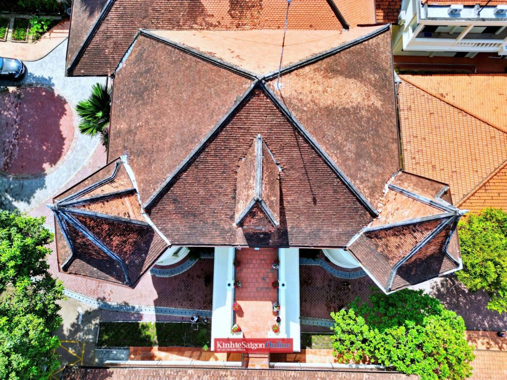 Nhìn từ trên cao, căn biệt thự cổ gần 100 tuổi nổi bật với kiến trúc châu Âu.