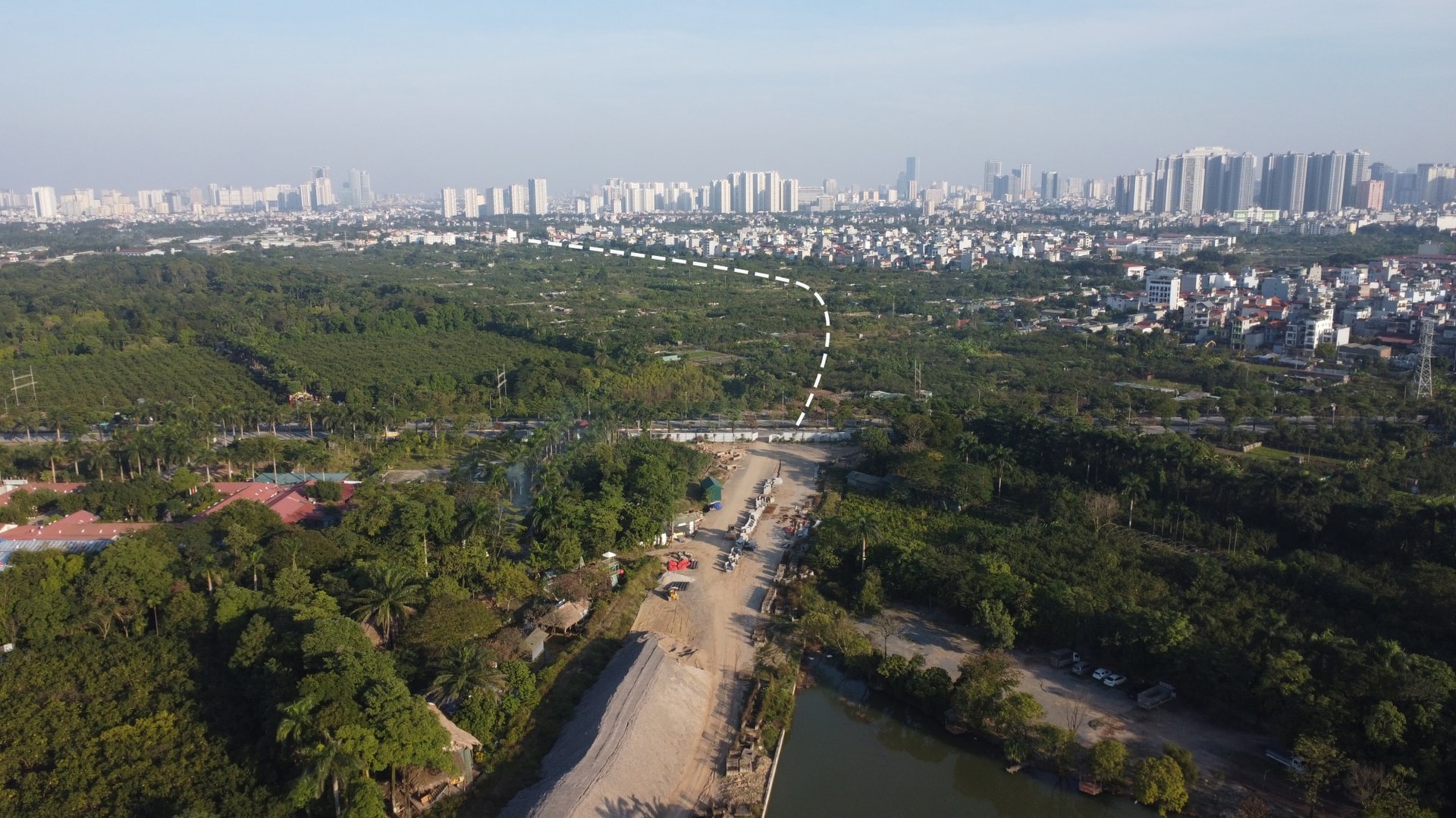 Sau khoảng một năm triển khai, dự án đã có những chuyển biến rõ rệt. Hiện tại, các nhà thầu đang tập trung thi công đoạn tuyến từ nút giao với đường Văn Tiến Dũng theo hướng về Vành đai 3,5. Các hạng mục như san lấp nền đường và thi công hệ thống thoát nước đang được triển khai tích cực.