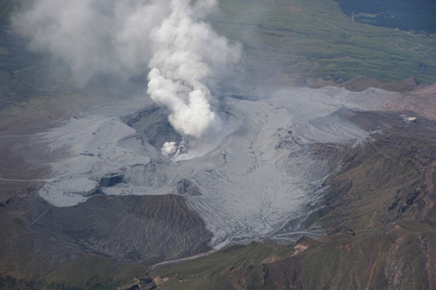 Miệng núi lửa Nakadake - nơi trực thăng du lịch bị mất tích. Ảnh: Jiji Press
