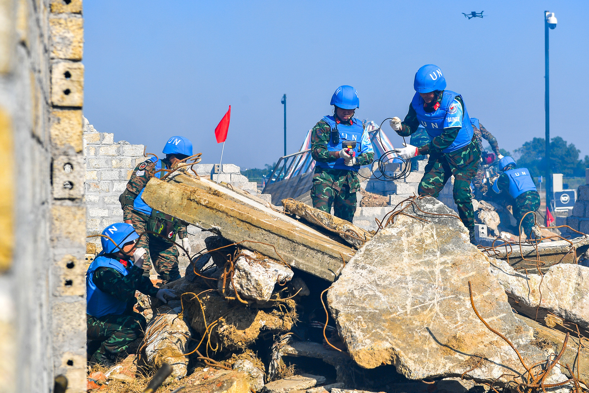 Đây là tình huống đòi hỏi có sự phối hợp, hiệp đồng nhuần nhuyễn, đảm bảo chuyên môn cao. Bối cảnh tình huống là sau khi xuất hiện trận động đất 6 độ richter, nhiều vị trí trong doanh trại đóng quân bị rung lắc. Người đứng đầu chính quyền địa phương cho biết, Bệnh viện do UNICEF hỗ trợ xây dựng bị sập, đổ, bên trong có một số nạn nhân bị kẹt lại.