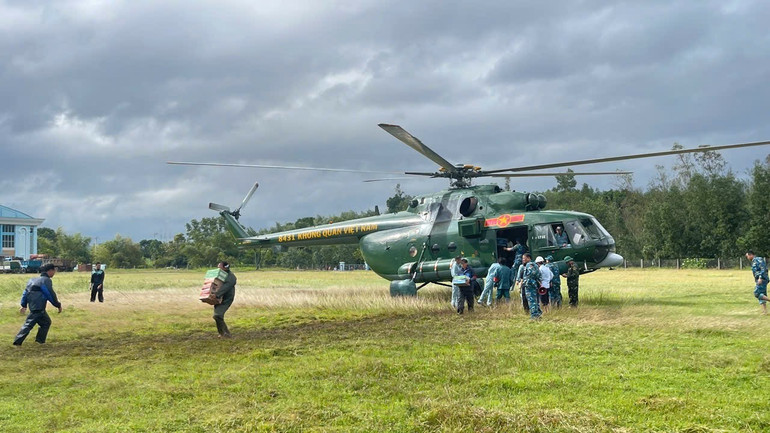 Trực thăng Trung đoàn Không quân 917, Sư đoàn 370, Quân chủng Phòng không-Không quân bay bảy chuyến vận chuyển 20 tấn hàng đến bà con vùng lũ.