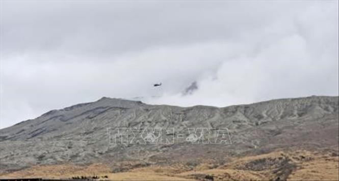Khu vực gần đỉnh núi Aso, tỉnh Kumamoto, Tây Nam Nhật Bản, nơi trực thăng du lịch chở 3 người mất liên lạc, ngày 20/1/2026. Ảnh: Kyodo/TTXVN