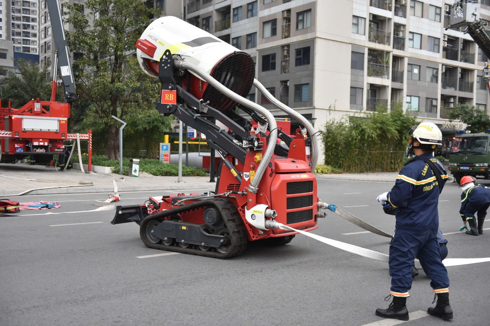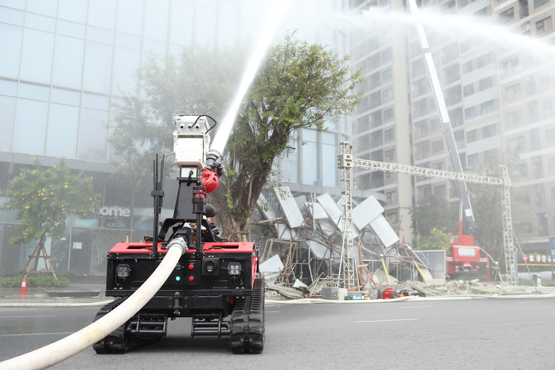 Robot chữa cháy được triển khai chiến đấu. Ảnh: TT