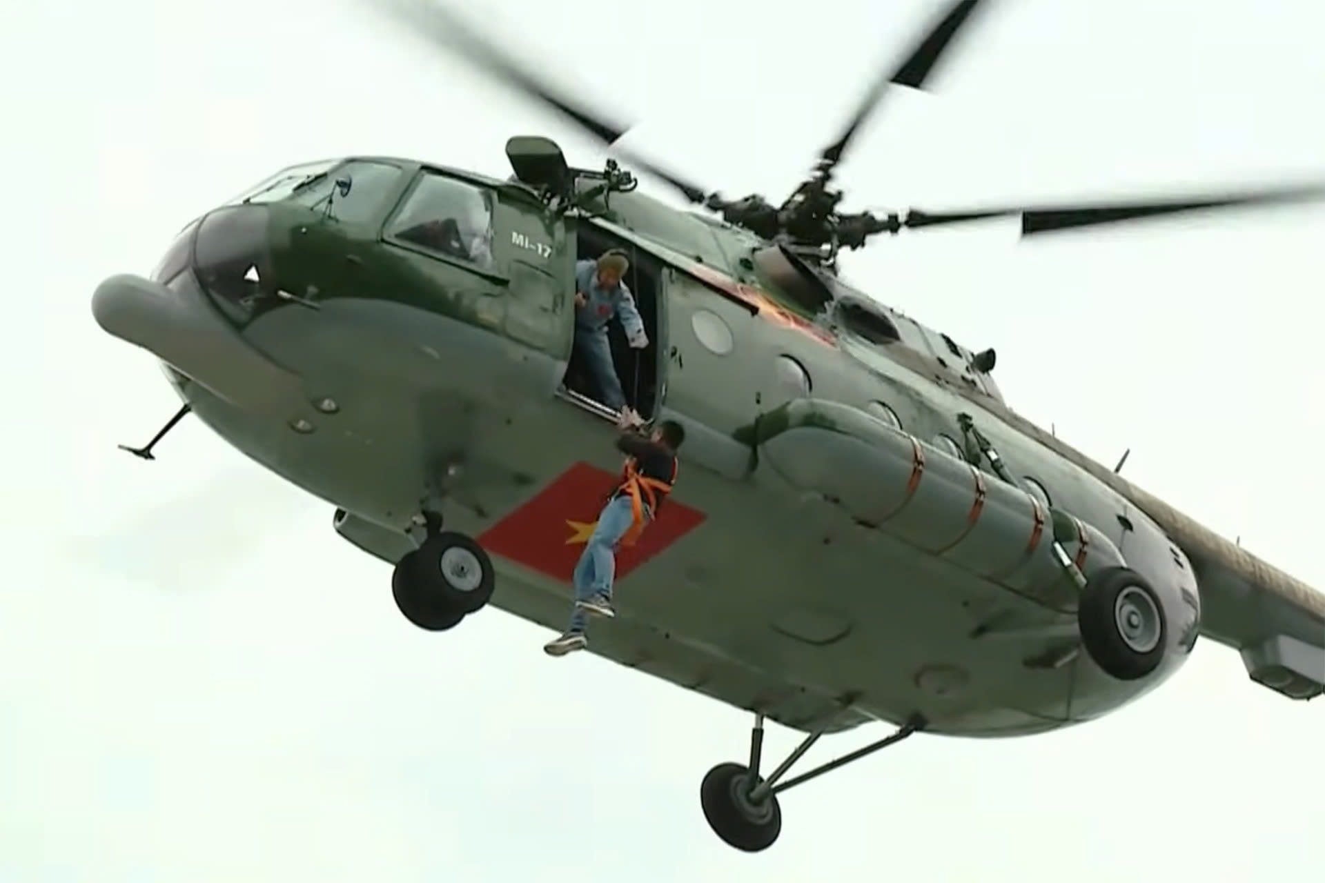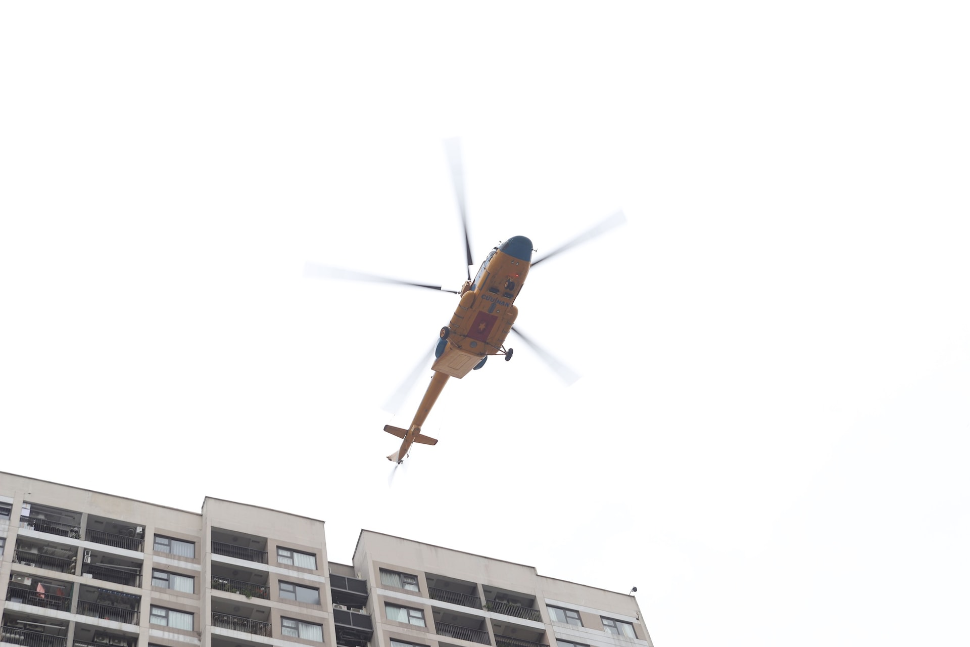 Với khả năng cơ động nhanh, tiếp cận từ trên không và triển khai cứu nạn trực tiếp tại nóc công trình, trực thăng đóng vai trò đặc biệt quan trọng trong việc cứu người. Ảnh: TT