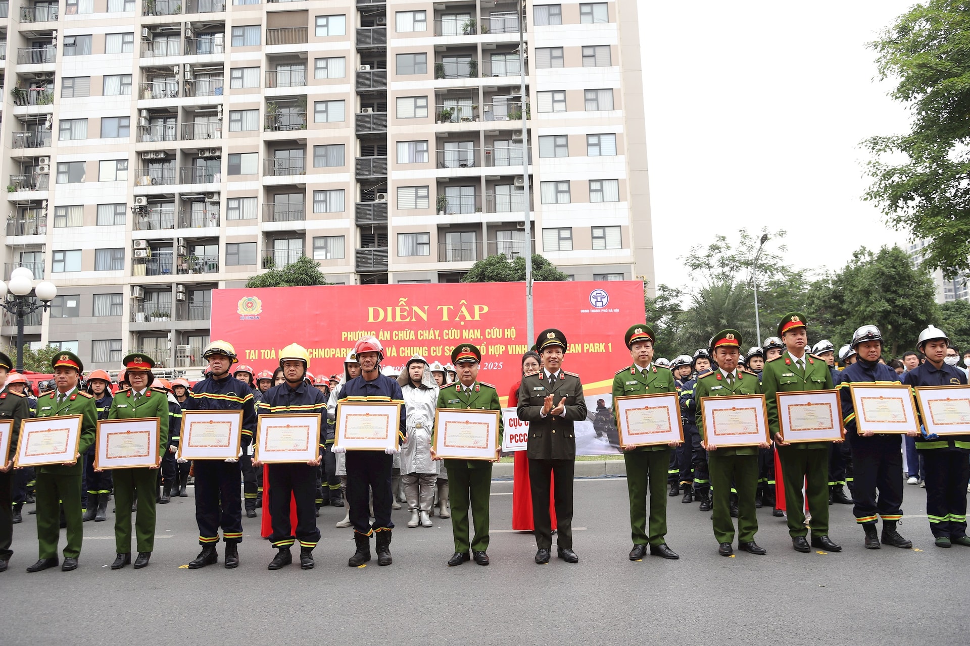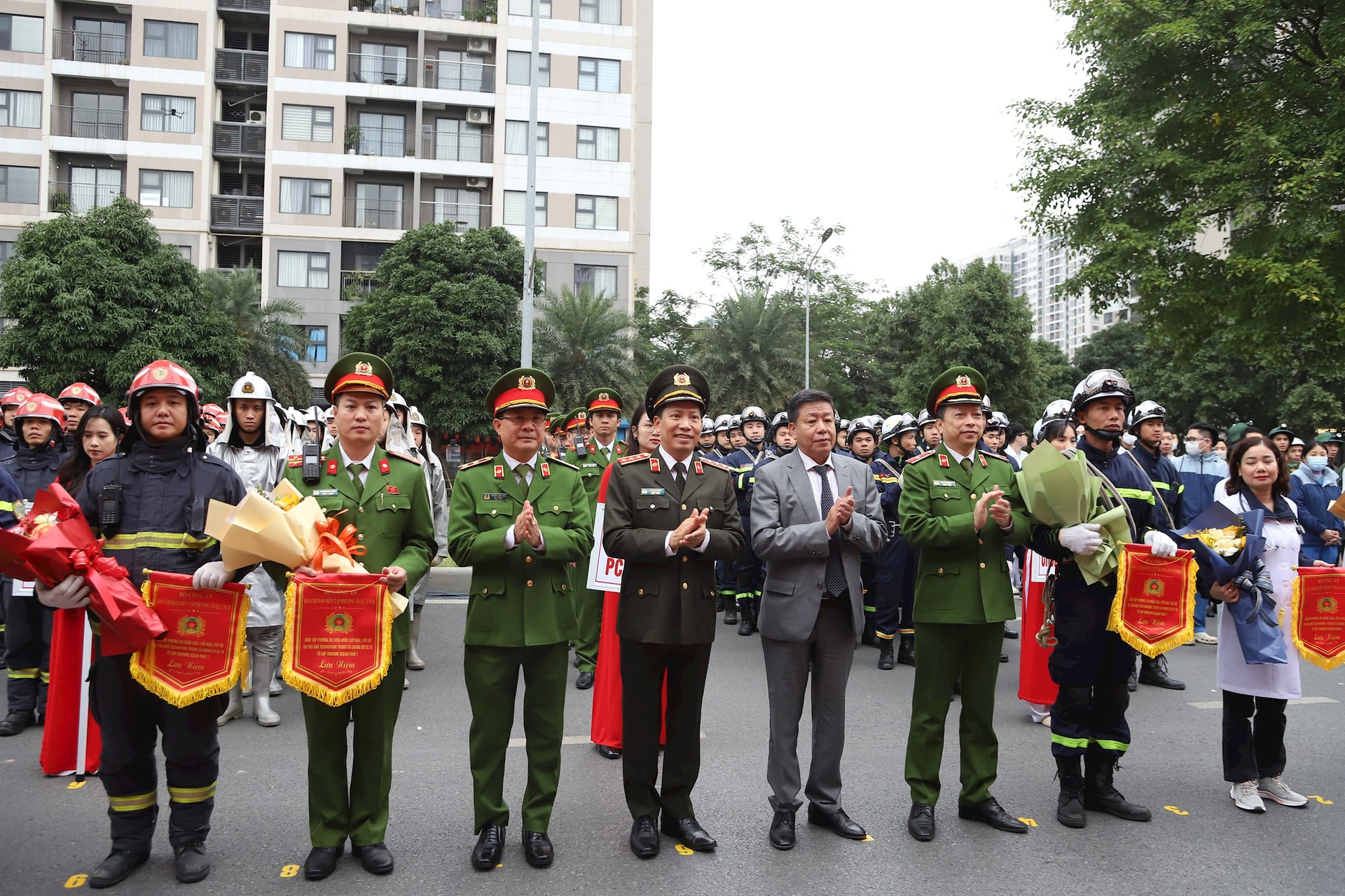 Phát biểu khai mạc diễn tập, Phó Chủ tịch Thường trực UBND thành phố Hà Nội Dương Đức Tuấn cho biết, từ đầu năm 2025 đến nay, trên địa bàn thành phố đã xảy ra 1.017 vụ cháy và 1 vụ nổ làm 27 người chết, 18 người bị thương, thiệt hại về tài sản ước tính khoảng 50,2 tỷ đồng; trong đó có 60 vụ cháy xảy ra tại các công trình nhà cao tầng (chiếm khoảng 6% tổng số vụ cháy).