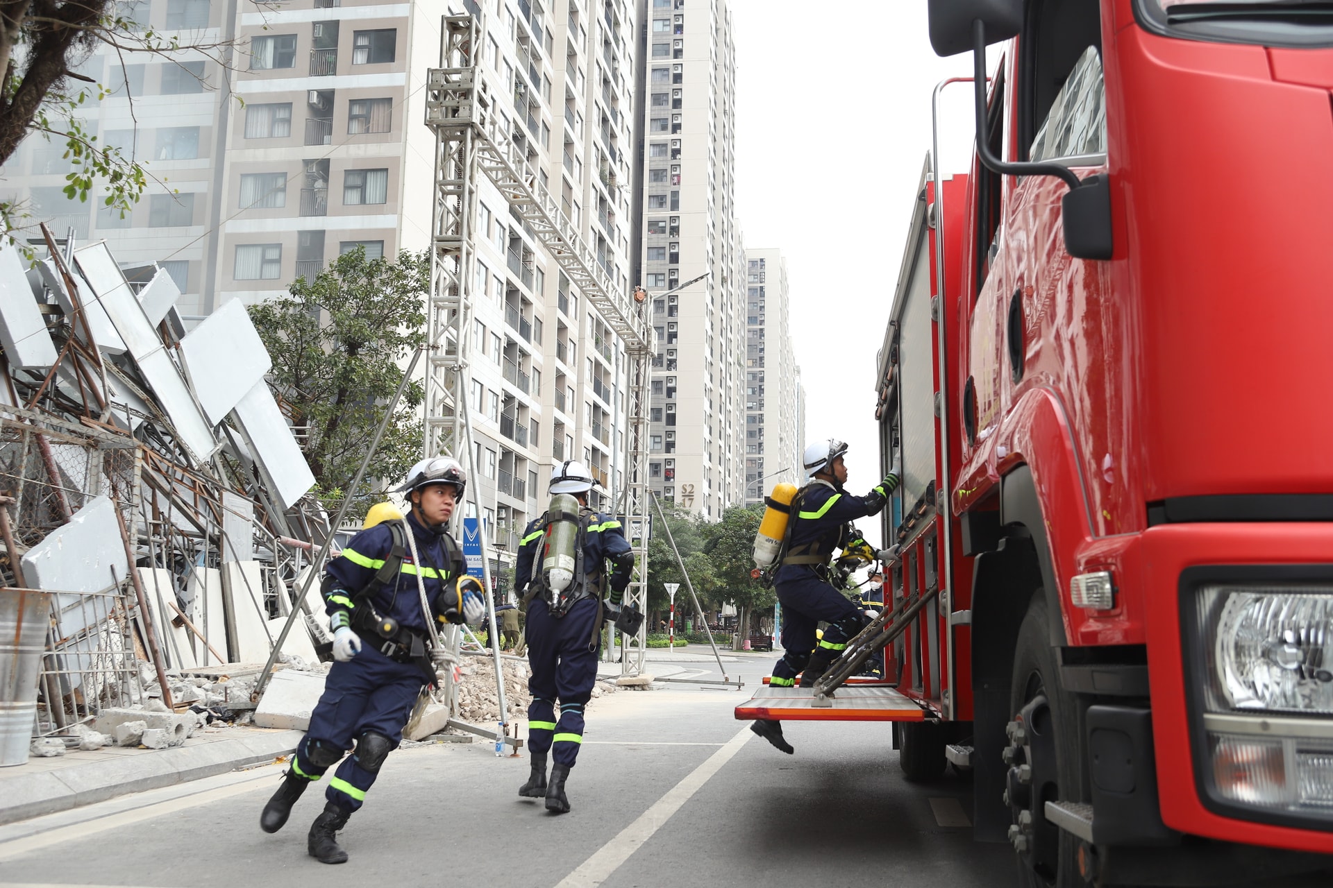 “Việc diễn tập phương án chữa cháy và cứu nạn, cứu hộ nhằm tăng cường khả năng thường trực sẵn sàng ứng phó, xử lý tình huống; công tác phối hợp hiệp đồng trong tổ chức chữa cháy, thoát nạn, tìm kiếm cứu nạn, cứu hộ của lực lượng Cảnh sát phòng cháy, chữa cháy và cứu nạn, cứu hộ, các lực lượng tham gia chữa cháy và cứu nạn, cứu hộ trên địa bàn thành phố Hà Nội, lực lượng chi viện của các địa phương lân cận Hà Nội tham gia xử lý tình huống cháy, nổ tại tòa nhà cao tầng. Đồng thời, nâng cao khả năng vận hành cơ chế chỉ huy, điều hành phối hợp hiệp đồng tác chiến giữa các lực lượng, phương tiện tham gia xử lý tình huống cháy, nổ, sự cố, tai nạn tại nhà cao tầng, đông dân cư”, Thượng tướng Lê Văn Tuyến nhấn mạnh.