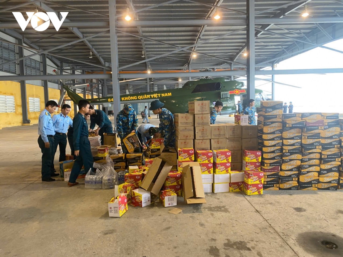 Với tinh thần khẩn trương, nhanh chóng, kịp thời, Sư đoàn 372 đã chuẩn bị 2 máy bay Mi-171, Mi-8 sẵn sàng cất cánh, cùng với 2 tấn lương thực thực phẩm và các nhu yếu phẩm cần thiết gồm lương khô, bánh, sữa, nước uống, áo phao… để hỗ trợ nhân dân các vùng bị cô lập do mưa lũ.