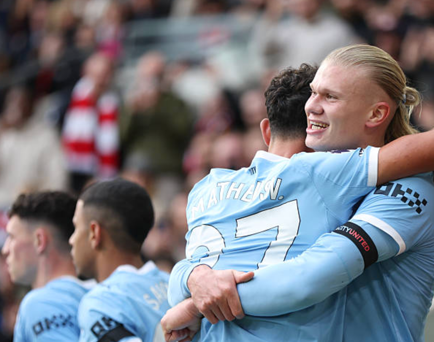 Xuất phát từ đường chuyền vượt tuyến của Gvardiol, Haaland cầm bóng đâm trực diện vào vùng cấm. Anh loại bỏ Van den Berg bằng pha cài người khôn ngoan, sau đó rê bóng loại Collins và dứt điểm lạnh lùng.