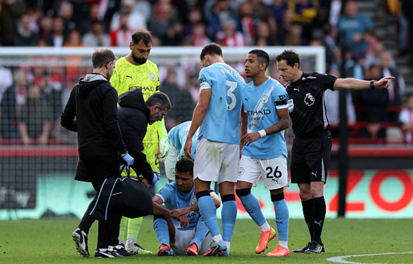 Phút 21: Rodri ngồi xuống sân và ra dấu hiệu thay người. Nhiều khả năng tiền vệ Man City bị tái phát chấn thương dây chằng đầu gối. Sau khi rời sân, Rodri đã đi thẳng vào đường hầm.