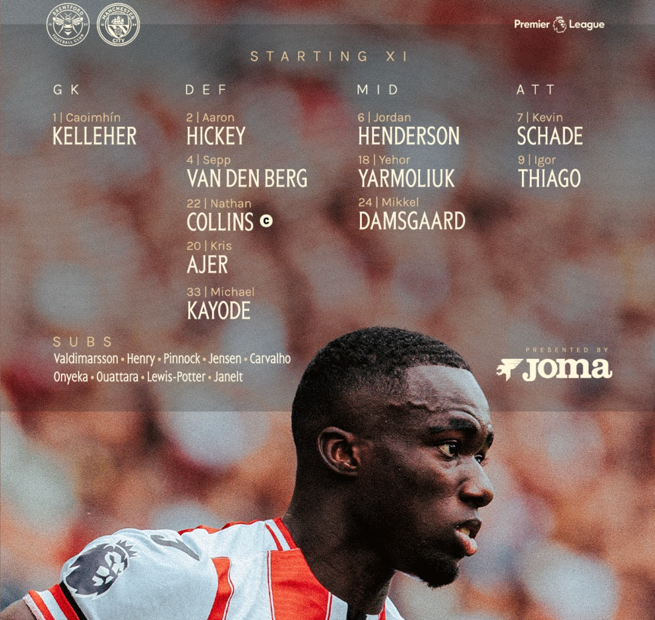 Đội hình dự kiến Brentford đối đầu Man City.