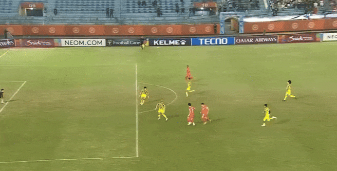 8': Tampines co đội hình về phòng ngự, tạo khoảng trống cho CAHN chơi nửa sân. Tuy nhiên, không dễ cho chủ nhà vì họ không có nhiều khoảng trống để phối hợp.