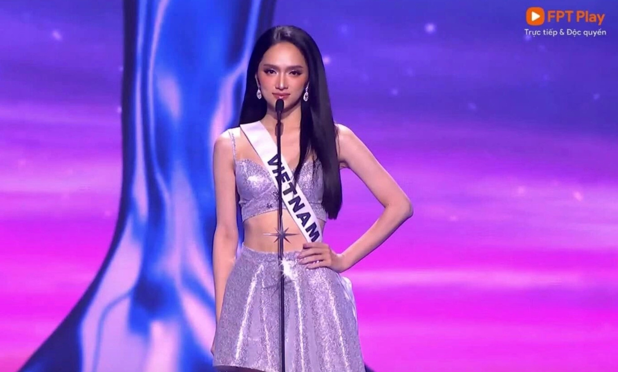 Hương Giang hô vang "Việt Nam" chào sân tại Chung kết Miss Universe.