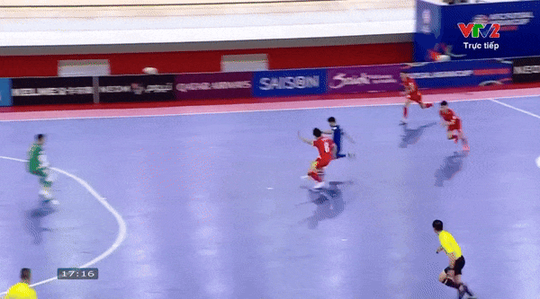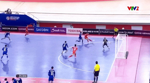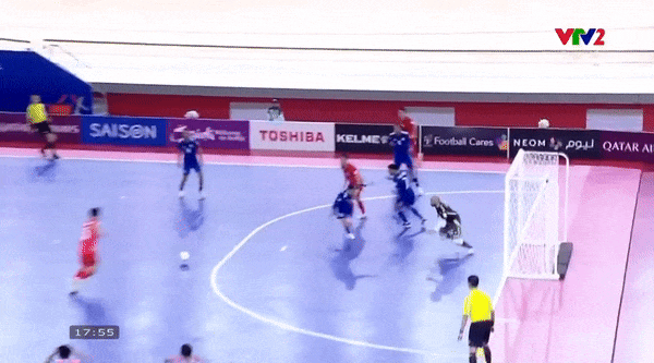 29': Sau hàng loạt pha dứt điểm, tuyển futsal Việt Nam đã có được bàn dẫn trước. Từ Minh Quang dứt điểm sệt, thủ môn Kuwait mắc lỗi khiến bóng từ từ lăn vào lưới.