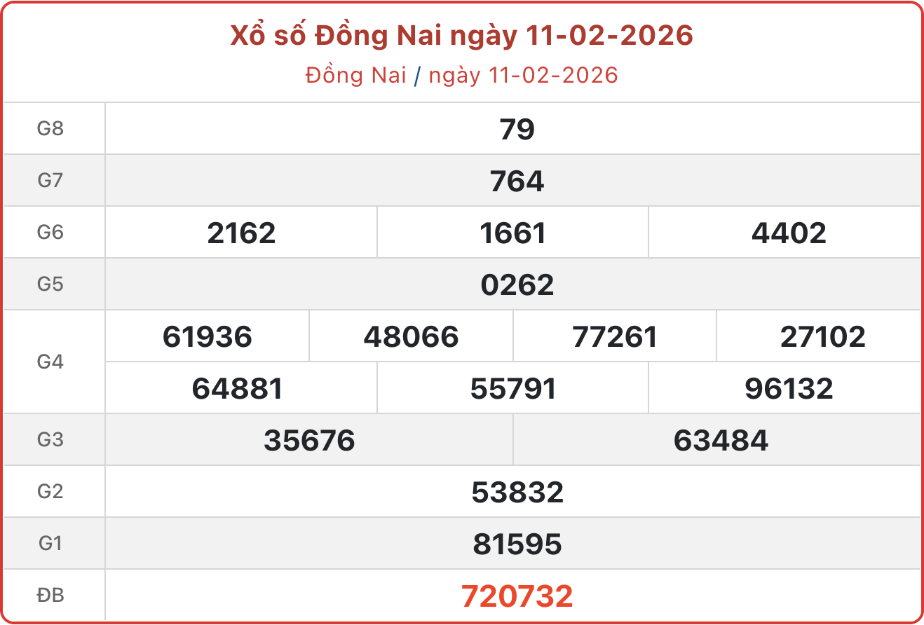 XSDN 11/2, kết quả xổ số Đồng Nai ngày 11/2/2026.