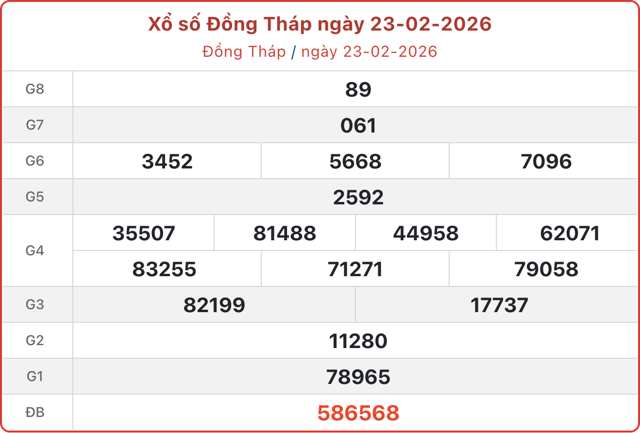 - XSDT 23/2, kết quả xổ số Đồng Tháp thứ Hai ngày 23/2/2026