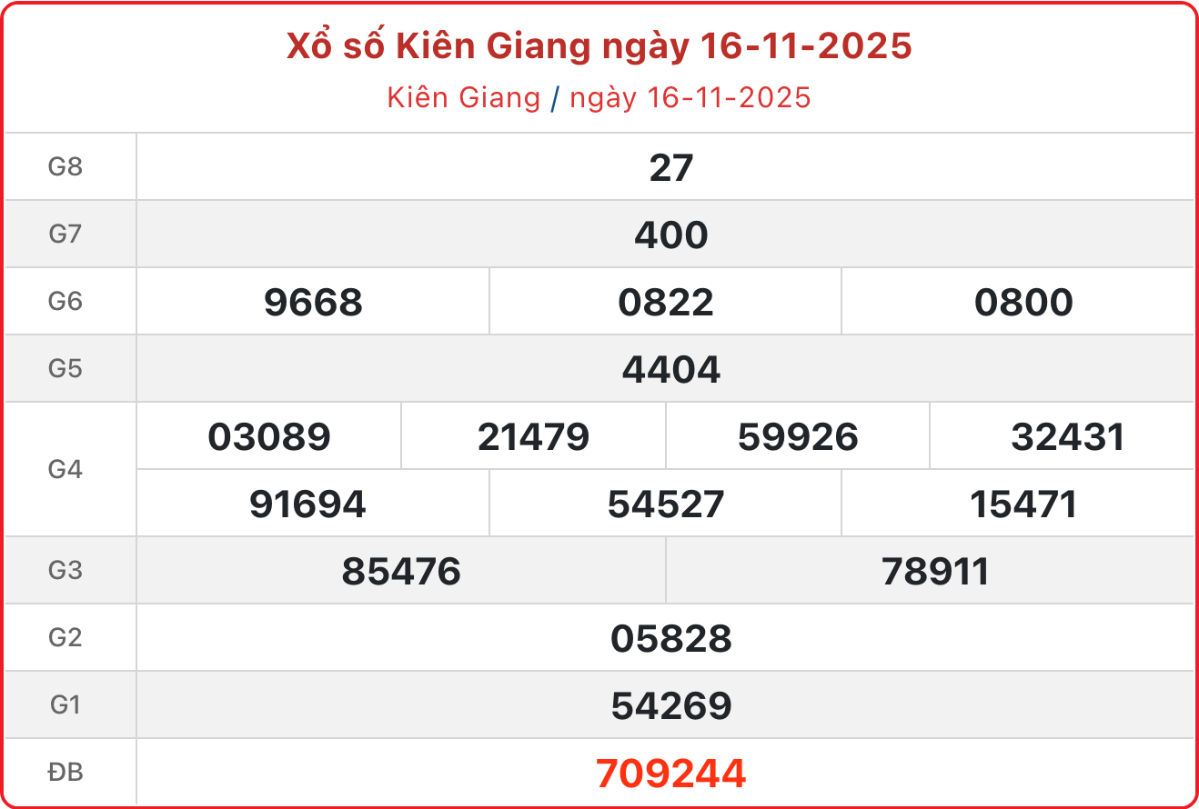 XSKG 16/11, kết quả xổ số Kiên Giang ngày 16/11/2025.