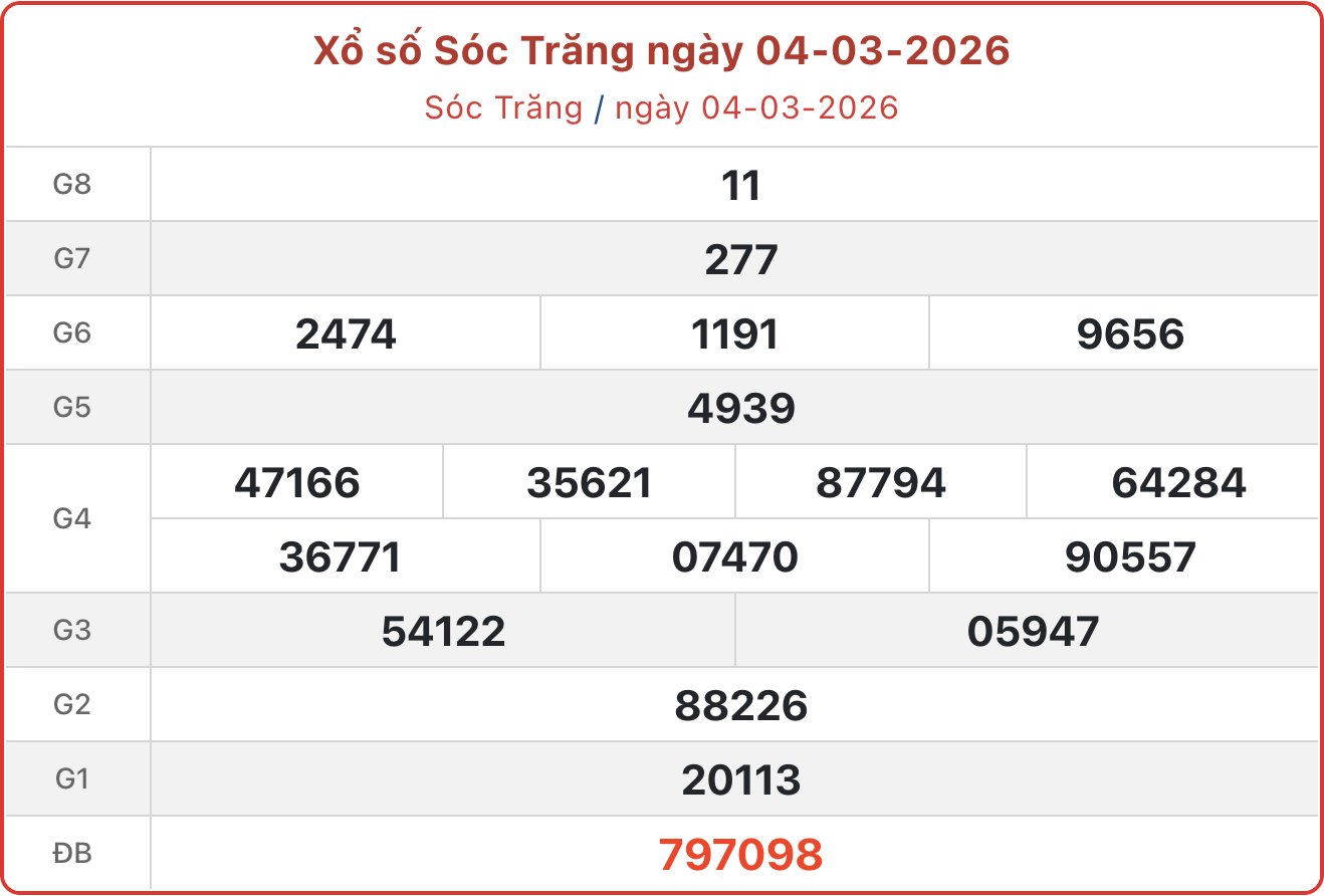 XSST 4/3, kết quả xổ số Sóc Trăng ngày 4/3/2026.