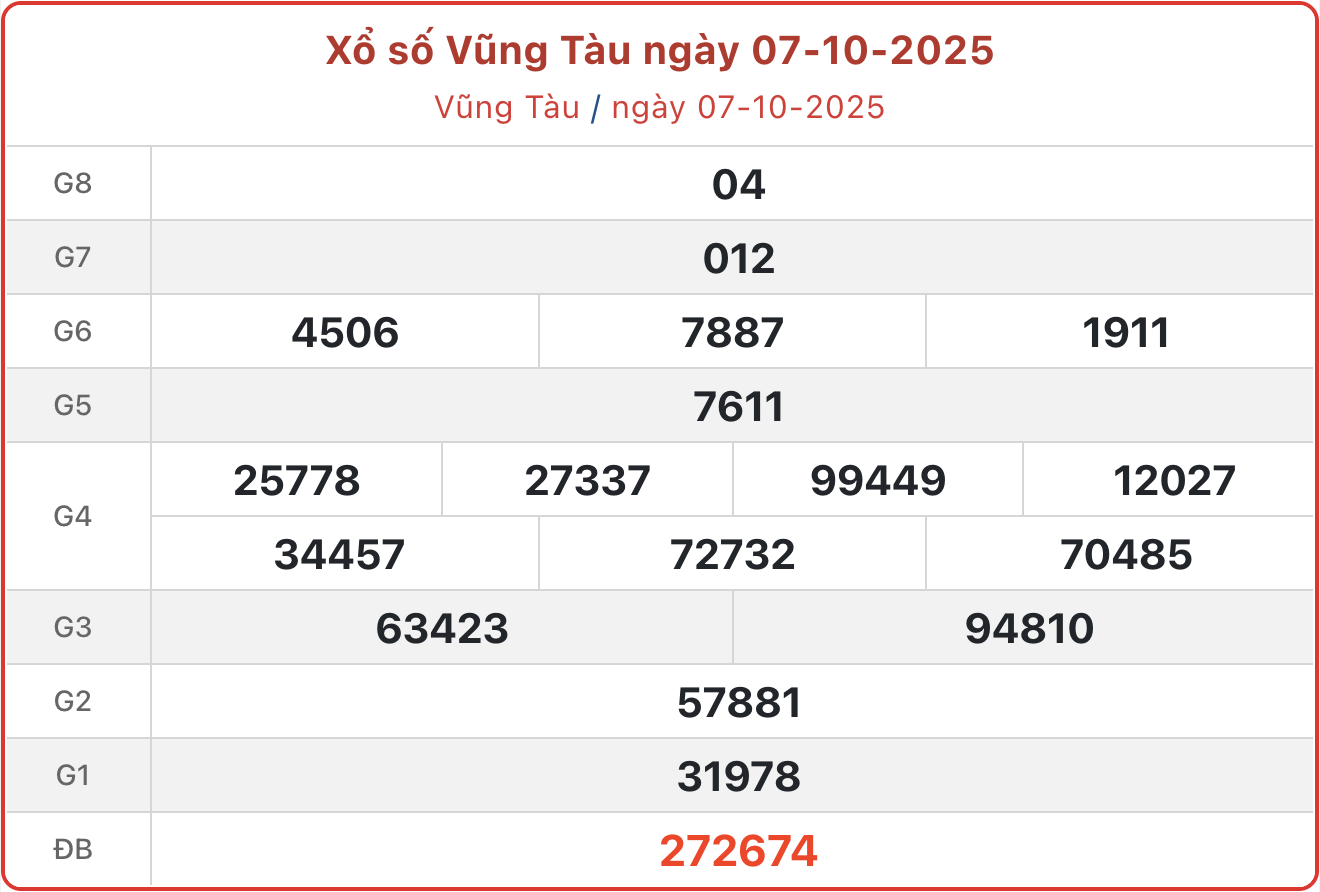 XSVT 7/10, kết quả xổ số Vũng Tàu ngày 7/10/2025.